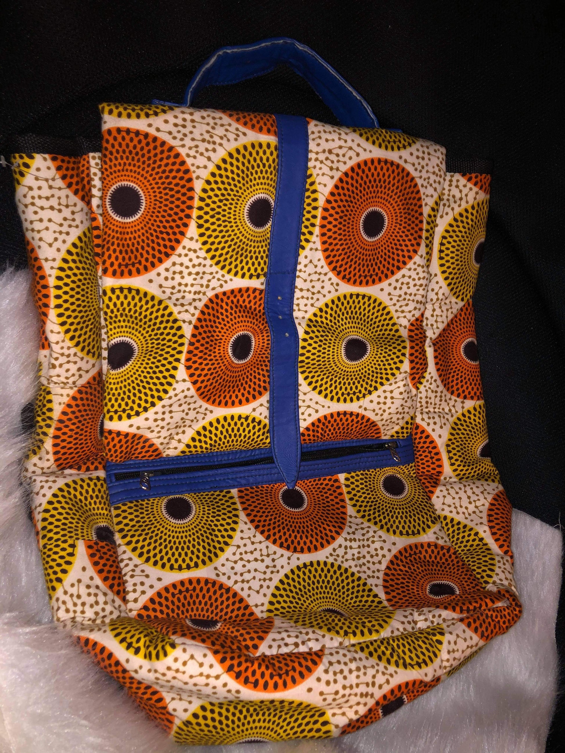 Measure 20×15×6. Has two side pockets, adjustable back strap, two zipper openings for storage/packing.