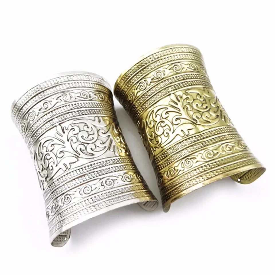 Women Metallic Gothic Long Wide Bracelet Adjustable