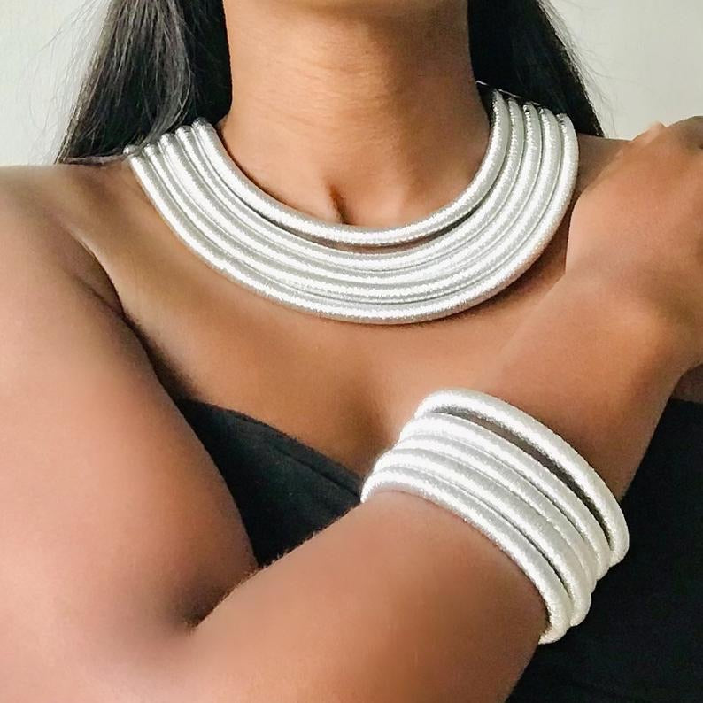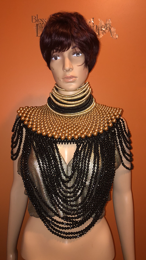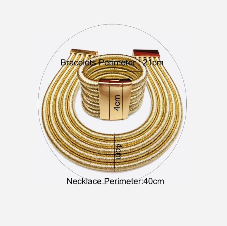 Our beautiful Yaa Asantewaa Gold Statement Necklace Bracelet Set. The choker necklace and bracelet is with easy magnetic closure.