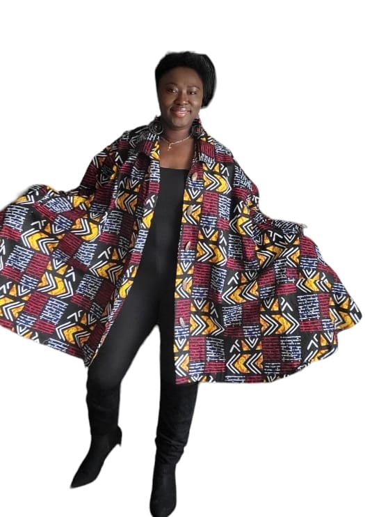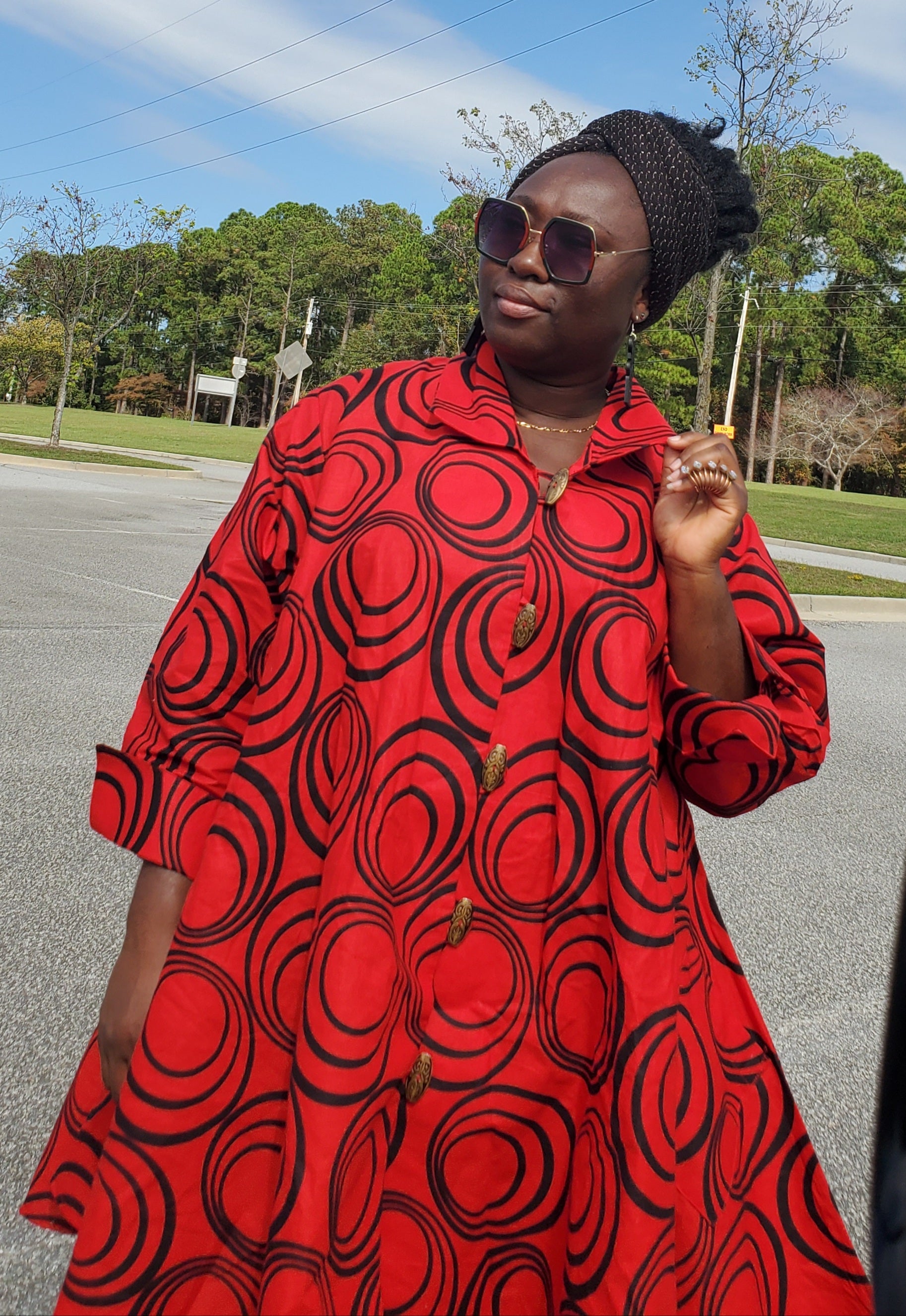 From opened, comfortable heavy fabric shirt. Can be worn over your clothing or worn as the only outfit. Beautiful for this Fall Season.