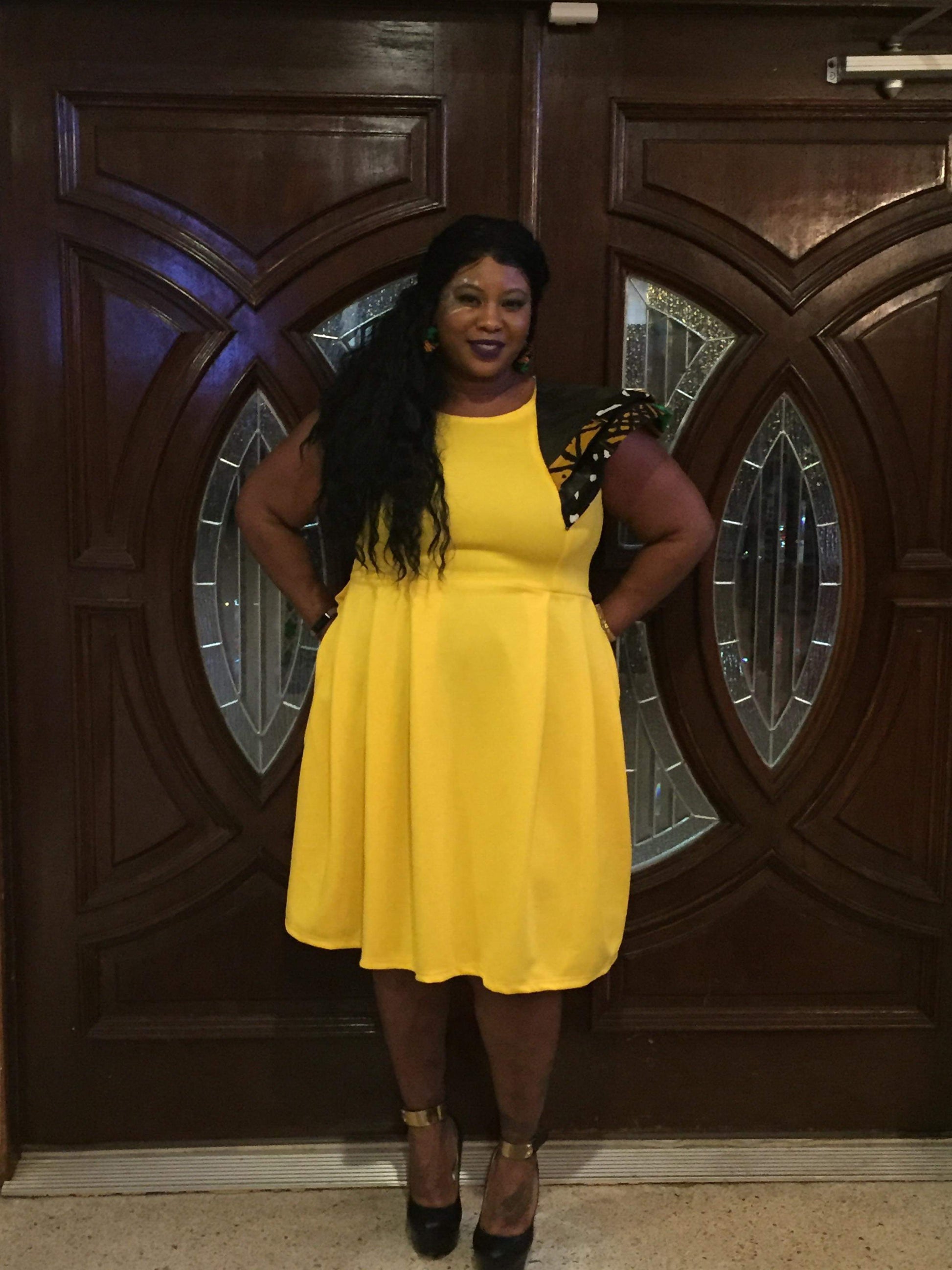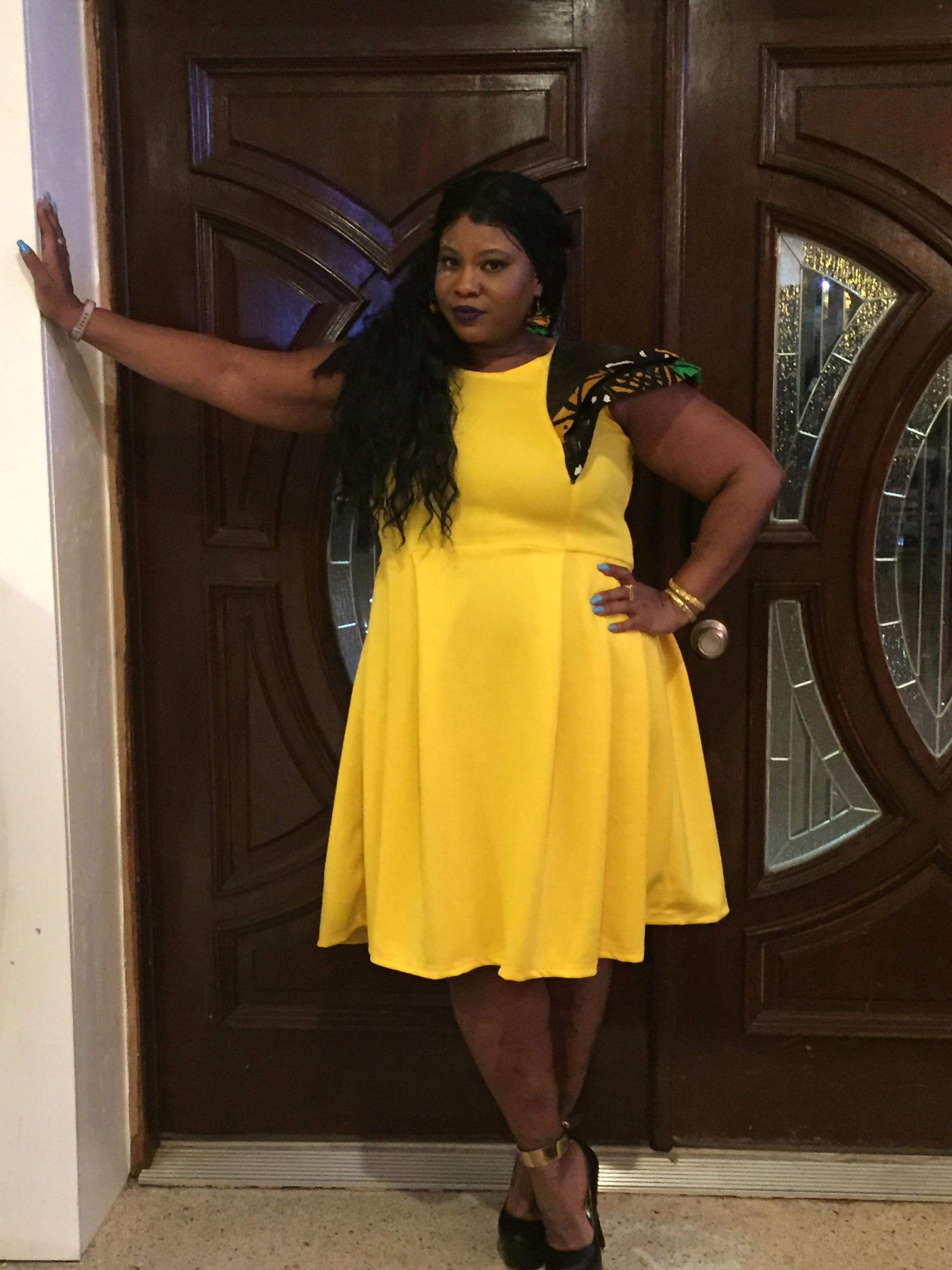 This beautiful pleated dress has a shoulder piece made of leather and Ankara. Great for any event.